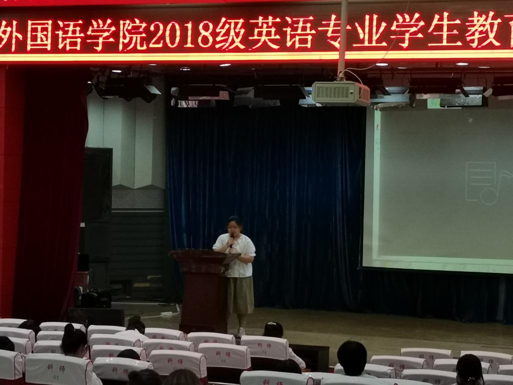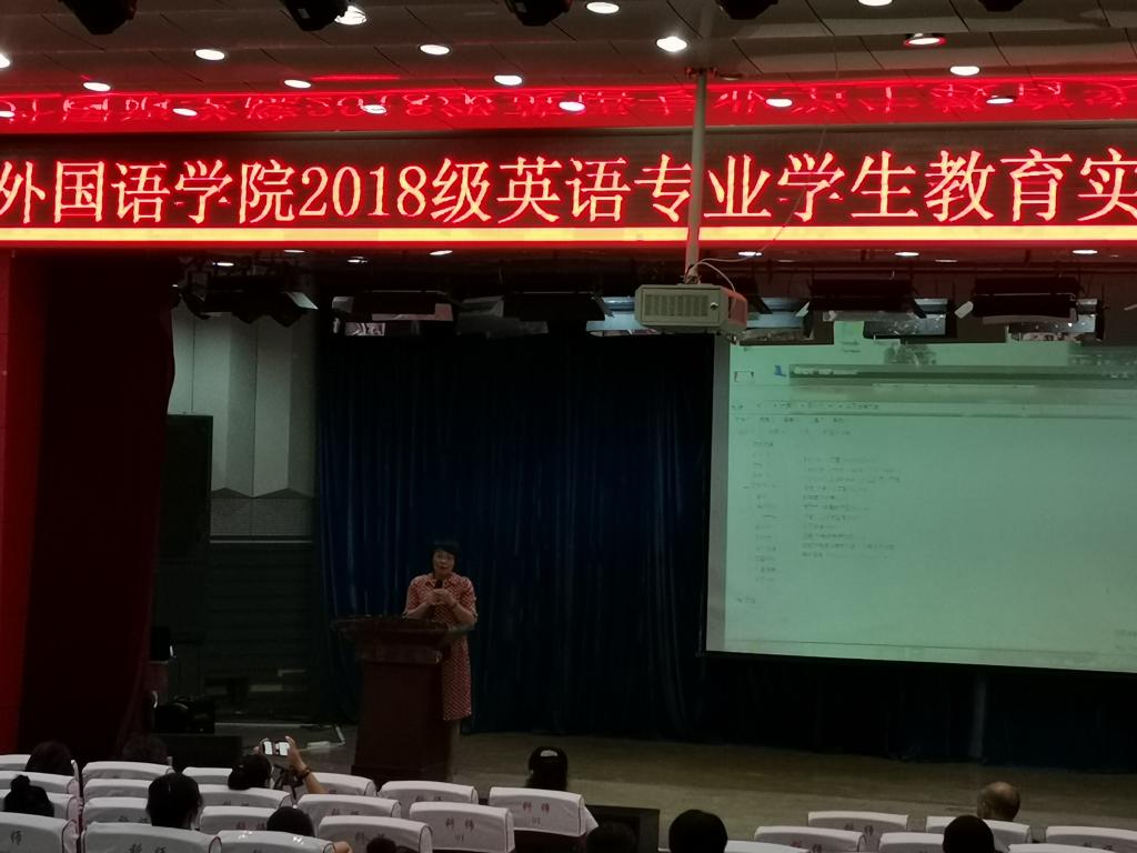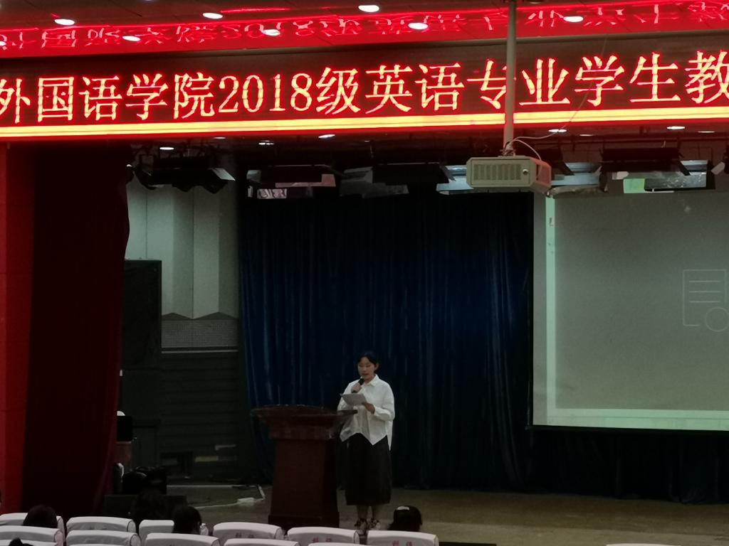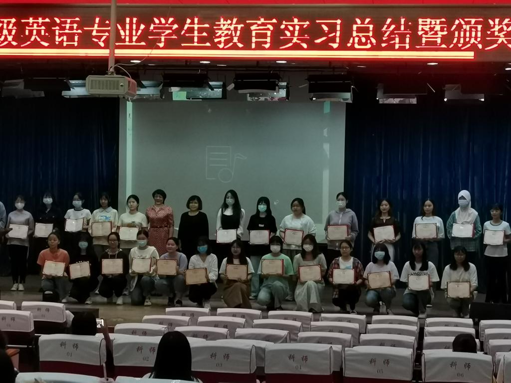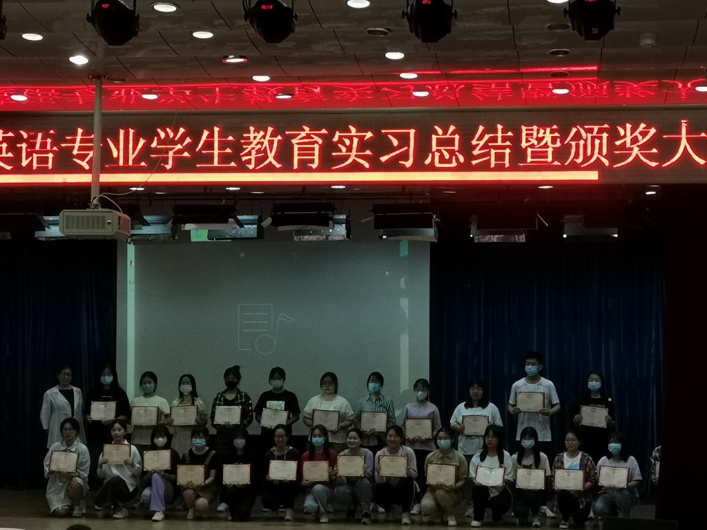 太阳成集团tyc122cc英语2018级员工教育实习总结暨颁奖大会于2021年9月16日在122cc太阳成集团官网开发区校区报告厅顺利举行,参加大会的员工包括英语2018级全体员工共122人,2021级新生代表共40人,同时,太阳成集团tyc122cc邵丽君书记、崔海英经理、罗学锋副经理和范学荣副经理,以及部分实习指导教师出席了大会。