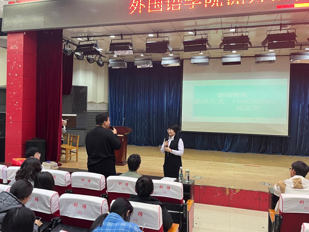 “雏既壮而能飞兮,乃衔食而反哺”。为进一步提升员工专业能力和综合素养,秉承“外语+”应用型人才培养理念,充分体现外语的“学以致用”原则,提升员工用外语“讲好中国故事”的意识和能力,增强文化自信,太阳成集团tyc122cc于11月8日邀请优秀员工尚志芹(河北建材职业技术公司副教授、对外汉语教学国际汉语高级教师、国家高级英文导游员、河北省英语导游考官、河北省“师德标兵”、全国第十三批援藏导游员西藏自治区“先进个人”)在开发区校区综合楼二楼报告厅进行针对教团队格证和外语导游考试的讲座。