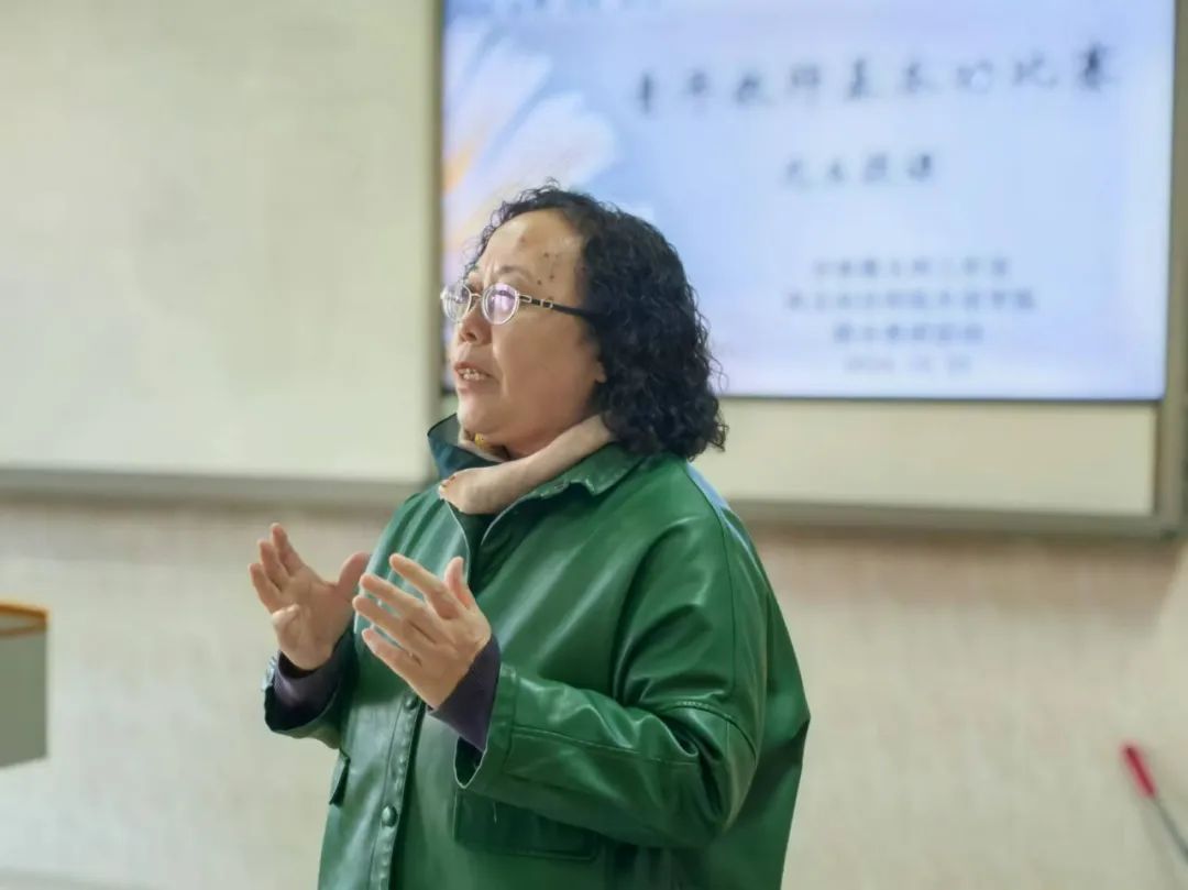 授课结束后,工作室主持人齐春霞老师详细地对五位青年教师的课程进行了点评与分析。她首先充分肯定了五位教师在授课中的精彩表现,并且指出她们不仅展示了自己的教学理念和独特的教学方法,还注重启发员工,逐步推进课程,这一点值得大家学习。