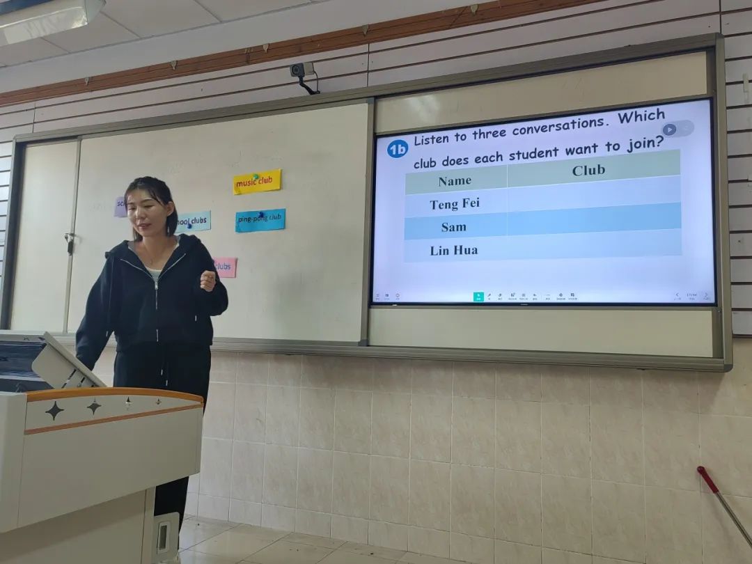 张梅老师的授课内容是七年级上册Unit5 Section A How do you choose a school club?张老师的听说课以采访视频导入本课,结合本校社团活动实际,开启员工们的社团报名之旅。以兴趣为抓手,结合本课重点句型的听说活动进行梯度化训练,使员工们在情境环境中感知语言的运用。课后的总结活动,又进一步强化了本节课的学习重点,为员工们的后续学习奠定了基础。