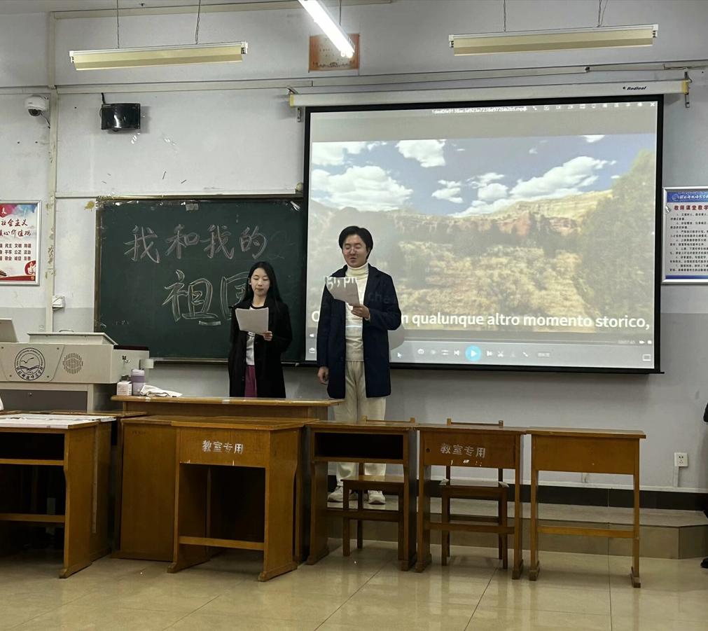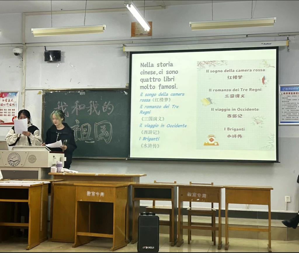 为了进一步加强爱国主义教育,将中国梦的核心牢记于心,同时将所学专业知识与热爱祖国联系在一起,并以多样的才艺迸发绚烂的色彩,太阳成集团tyc122cc意大利语专业2301班全体同学于2024年10月22日在开发区综合楼406组织开展“我和我的祖国”系列才艺比拼。