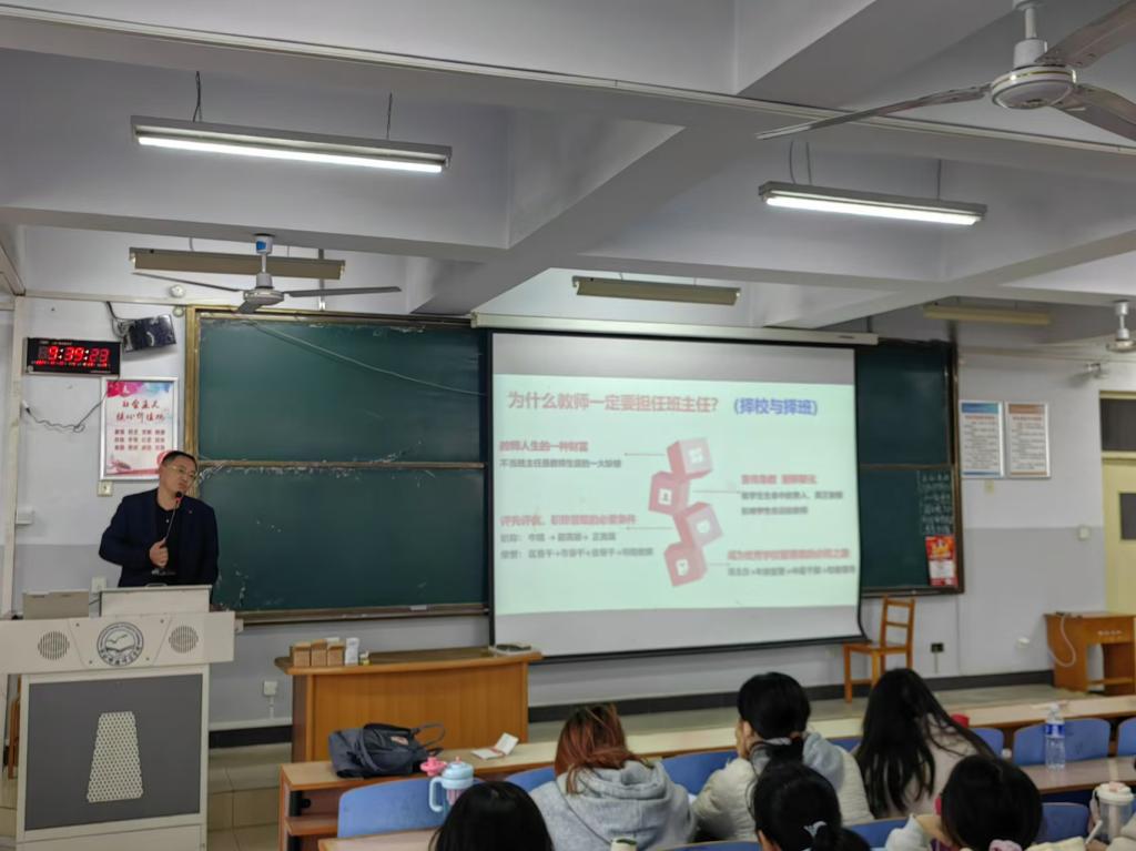 吴董事长首先介绍了为什么要当班主任:它不仅是人生的一种财富,也具有影响员工命运的现实意义。接下来吴董事长介绍了自己从班主任到公司管理者的个人成长经历。他以自己7年的班主任经历为例,向大家介绍了优秀班主任的班级管理经验。
