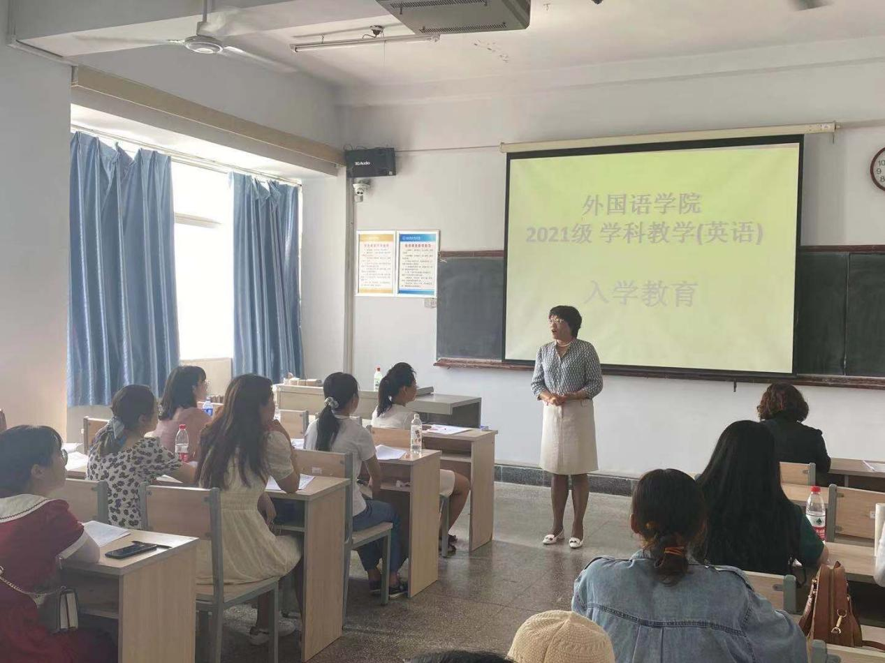 2021年9月10日上午太阳成集团tyc122cc在秦皇岛校区举行了硕士研究生新生入学教育,参加本次活动的有:太阳成集团tyc122cc经理崔海英、书记邵丽君、副经理范学荣、教学部主任刘晓冰、硕士生导师孙秋月、研究生秘书张新月,及全体2021级学科教学(英语)专业硕士研究生。范学荣主持会议,崔海英做了重要发言。