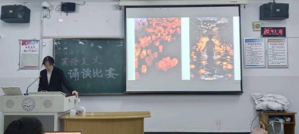 诵读的时候人是专注的,因为你在听一些灵魂自言自语,不由自主的谦逊和聚精会神,能够与其中的人物产生一些共鸣。通过此次美文诵读活动,同学们明白了在大学期间大声诵读外文文章的重要意义,明白了作为一名英专生应该如何应对自身的发展,并知晓了诵读对老员工的重要性。