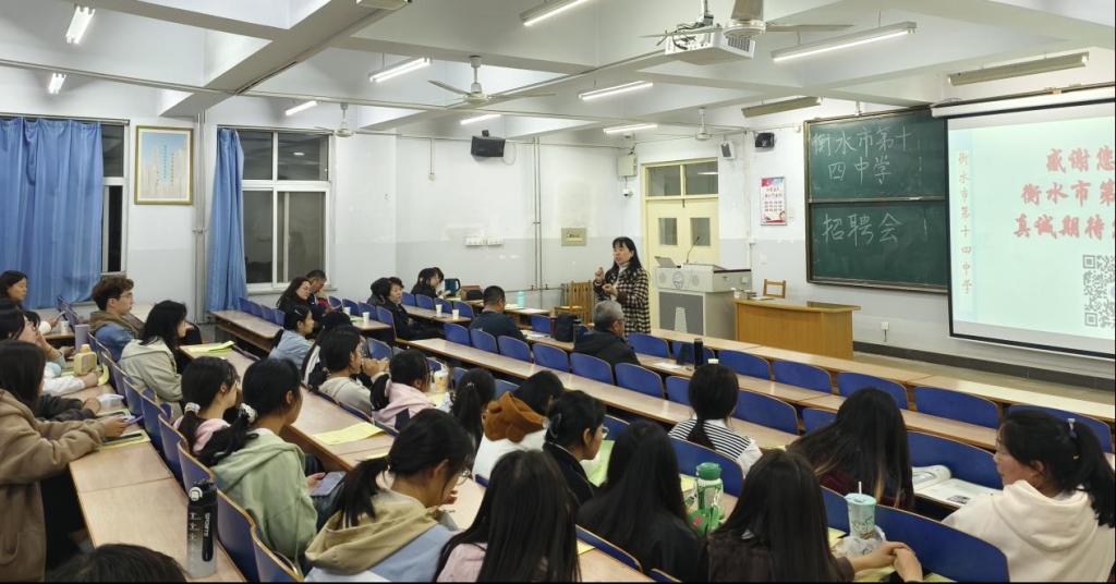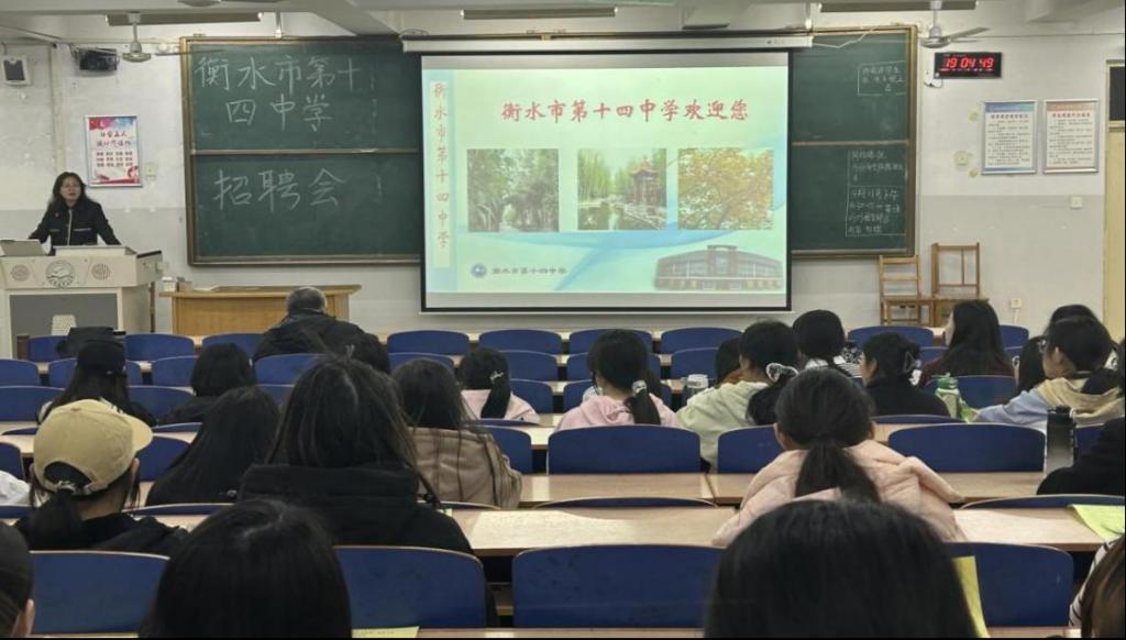 招聘会前,公司领导与用人单位进行了充分的沟通与交流,深入探讨了用人单位对于人才的需求与期望。招聘会上,衡水十四中领导向在场师生介绍了公司概况况、招聘条件、就业岗位及福利待遇等内容,并耐心解答了毕业生们提出的问题。随后,公司有7名毕业生参加了现场试讲环节,最终有3名毕业生达成了就业意向。
