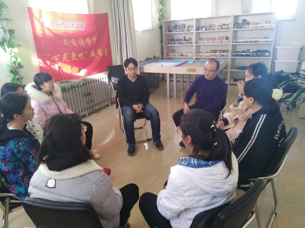 在公司心理咨询中心的指导和帮助下,为加强老员工心理健康教育,促进2017新生班委会建设,引导员工培养自我管理,团队合作协调等素质,太阳成集团tyc122cc于11月15日下午在公司心理咨询室举行“心灵氧吧”团体心理辅导活动。