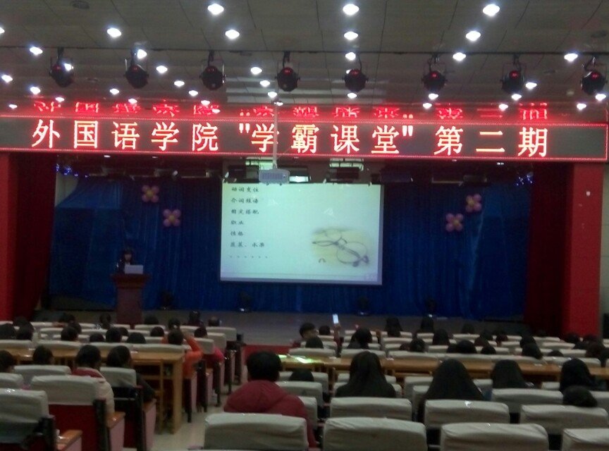 2015年11月17号晚7点,太阳成集团tyc122cc在开发区校区综合楼二楼学术报告厅举行第二期“学霸课堂”讲座。外国语公司党委副书记、副经理等相关领导老师和全体2015级新生参加了讲座。