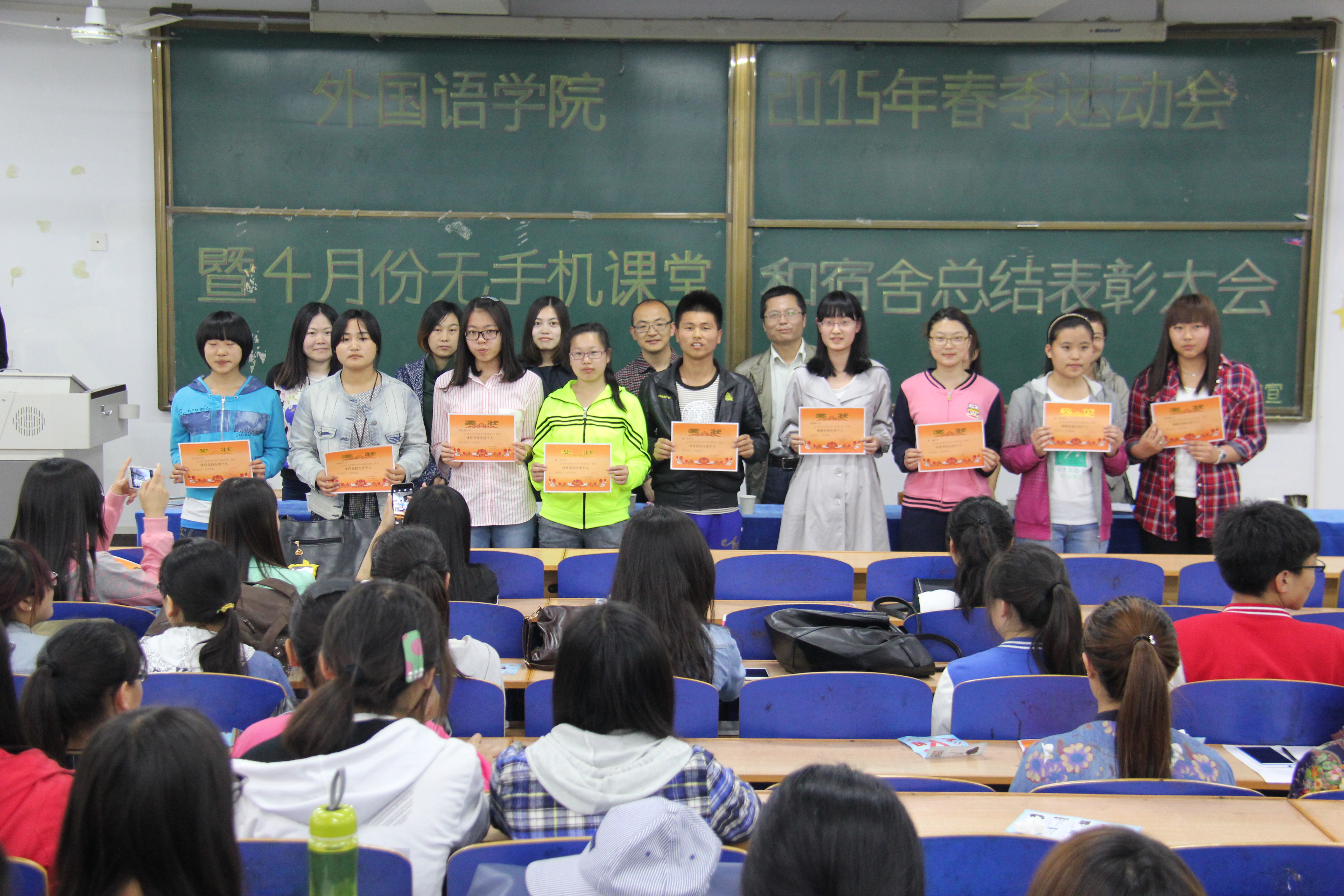 2015年122cc太阳成集团官网春季运动会刚刚落下帷幕,太阳成集团tyc122cc获得运动会精神文明奖。为总结经验,传承运动会拼搏奋斗精神,太阳成集团tyc122cc于5月8日中午在综合楼312教室召开了2015年太阳成集团tyc122cc运动会总结表彰大会。学工办、全体辅导员、员工会全体成员和参加运动会的班委干部和运动员近200多人参加了大会。会上,全体老师们为获得2015年公司精神文明先进班集体、竞技先进班集体和运动会先进个人荣誉称号的集体和个人颁发奖状和证书。在发言中,老师们希望同学们通过运动会锻炼健康体魄,希望同学们发扬运动会团结一心,拼搏向上的精神,并在以后的学习工作中继续努力,取得更加优异的成绩。