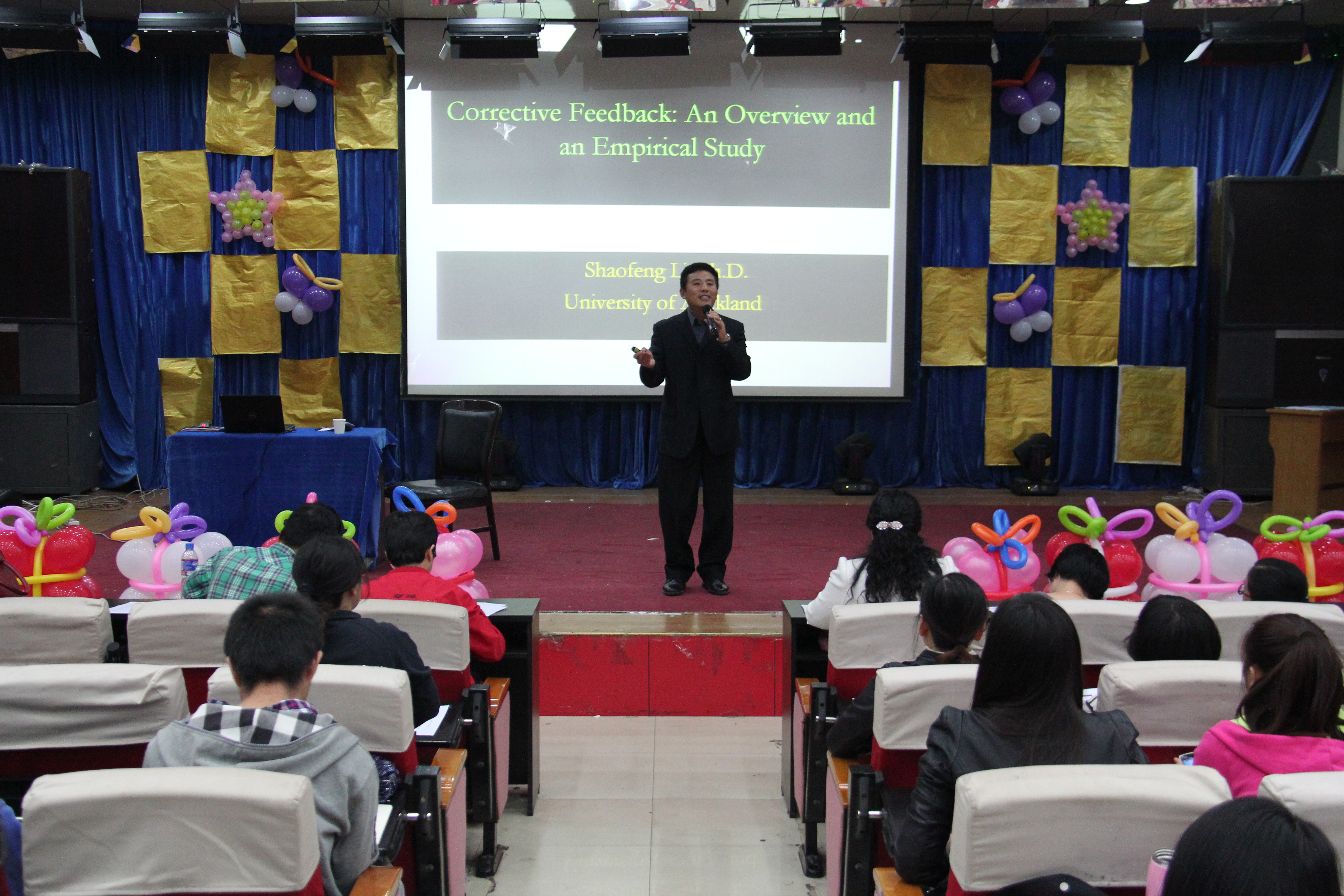 2015年5月8日下午,应公司太阳成集团tyc122cc邀请,新西兰奥克兰大学语言公司副教授,新西兰应用语言学学会常务理事李少峰在公司开发区校区报告厅为公司师生做了一场题为《二语习得中的纠正性反馈》的学术报告。太阳成集团tyc122cc师生共400余人听取了报告。报告会由太阳成集团tyc122cc经理邵丽君主持。