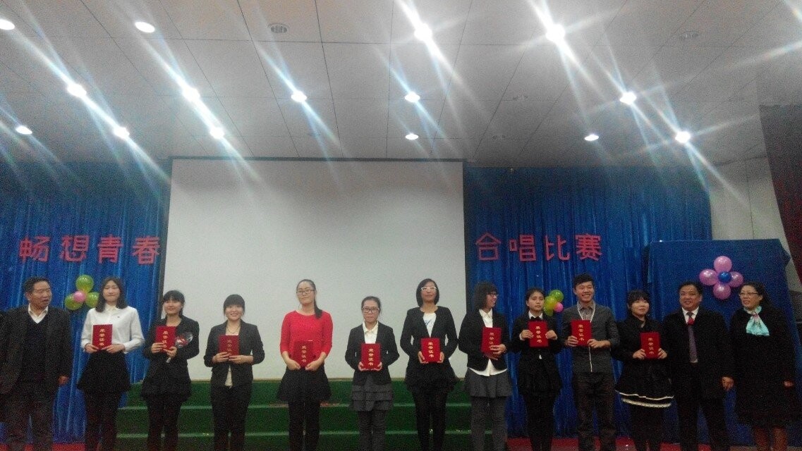 2014年11月14日晚七点,太阳成集团tyc122cc在二楼学术报告厅举办了畅想青春合唱比赛决赛。外国语公司党委书记白雪松、经理邵丽君、副经理游建民、副经理崔海英、副经理范群英、学工办老师以及班级辅导员出席了本次比赛。