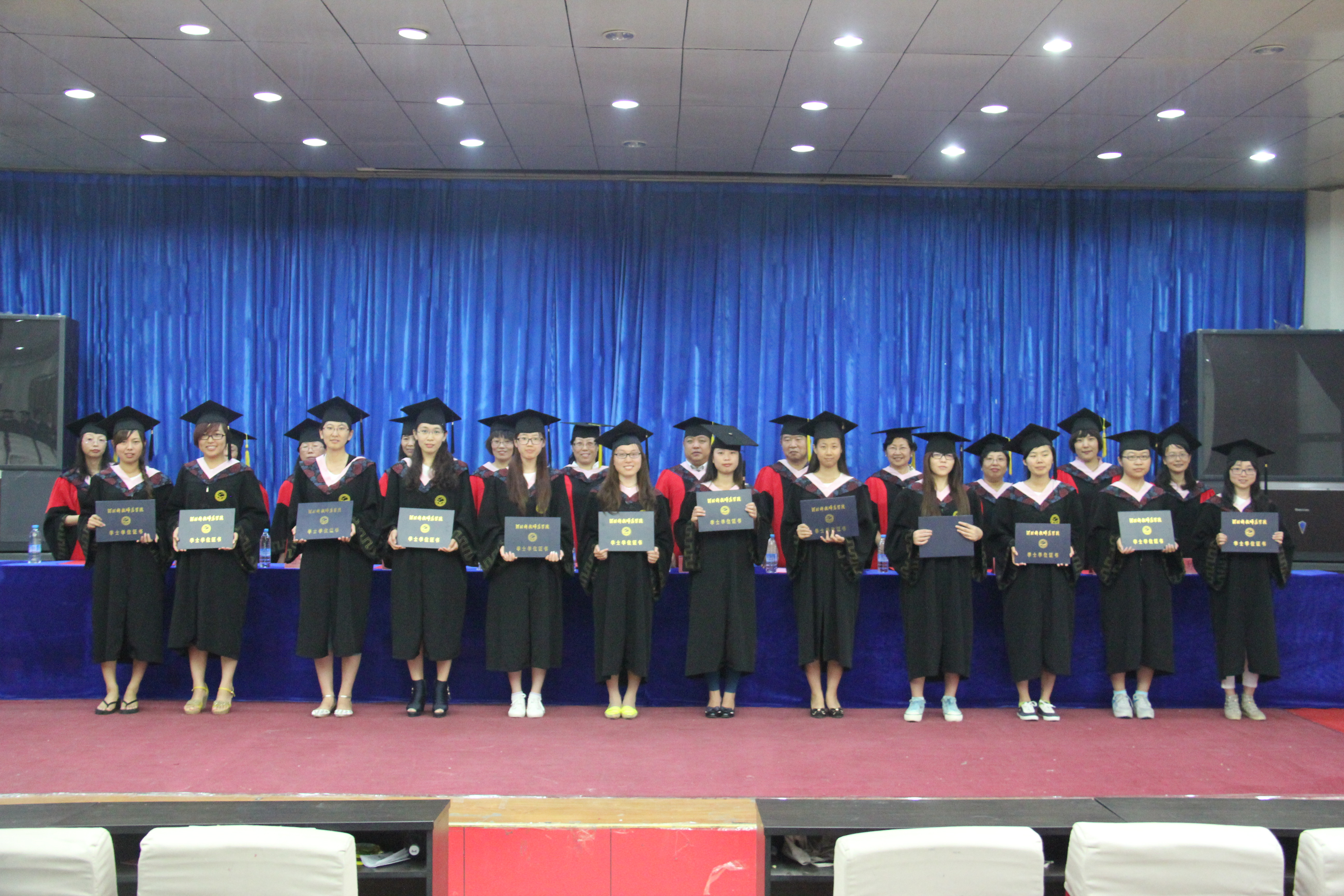 毕业典礼之后,公司举行2014届本科毕业生学位授予仪式。首先崔海英教授宣读学位评定委员会主席的委托词,之后,太阳成集团tyc122cc经理邵丽君教授宣读授予学位的决议和名单,最后由各位导师为太阳成集团tyc122cc126名获得学士学位的毕业生颁发学位证书。