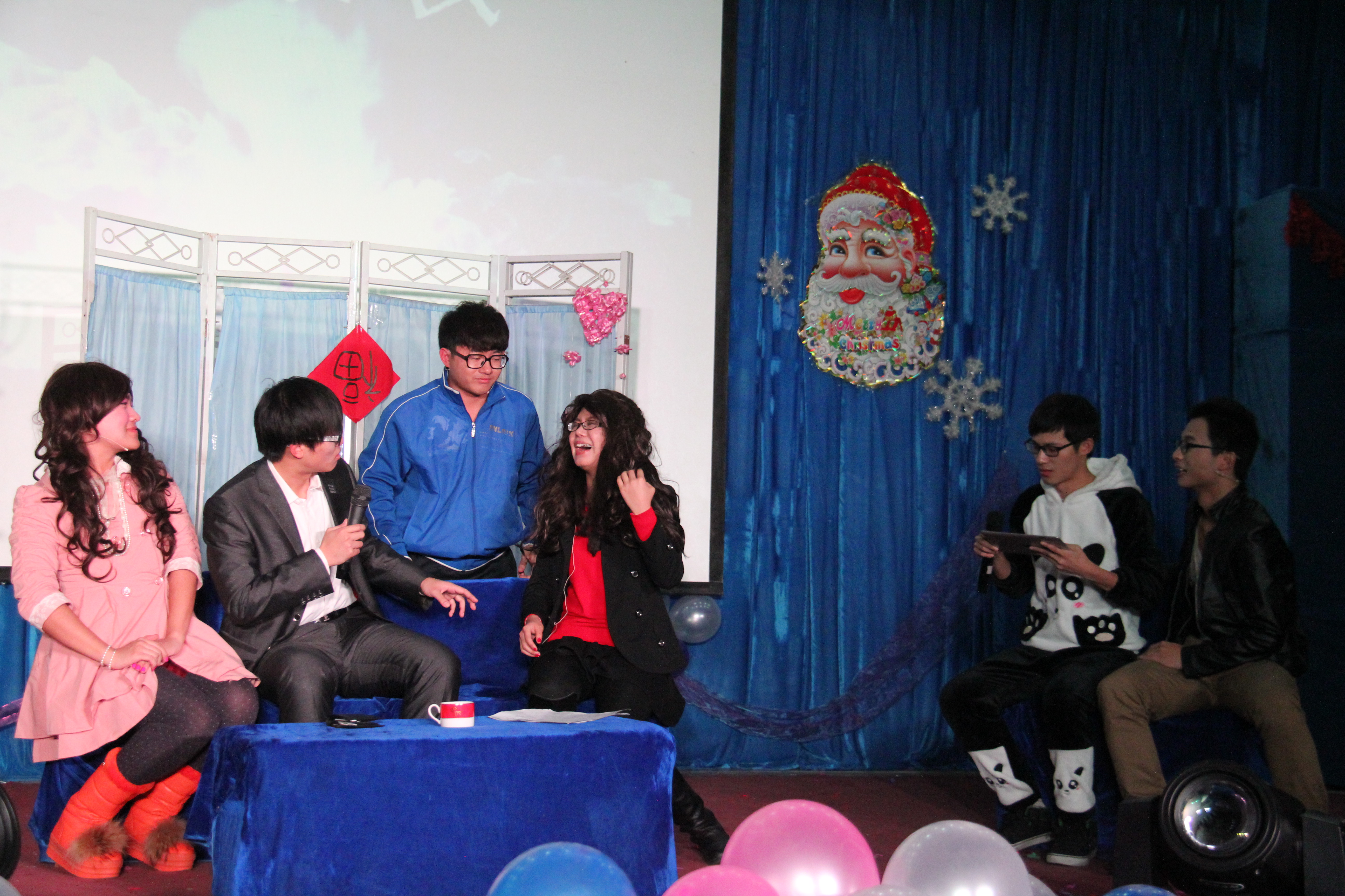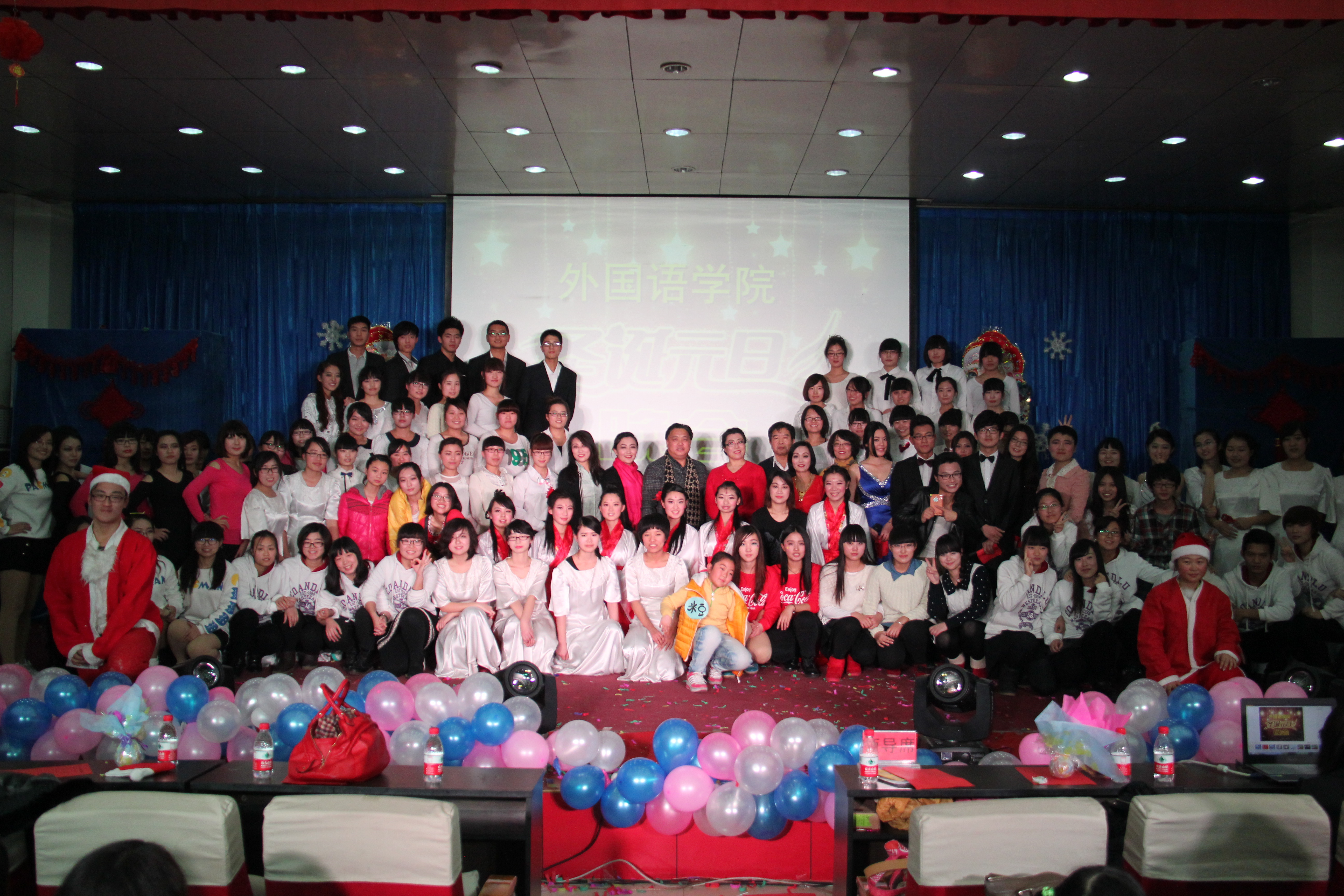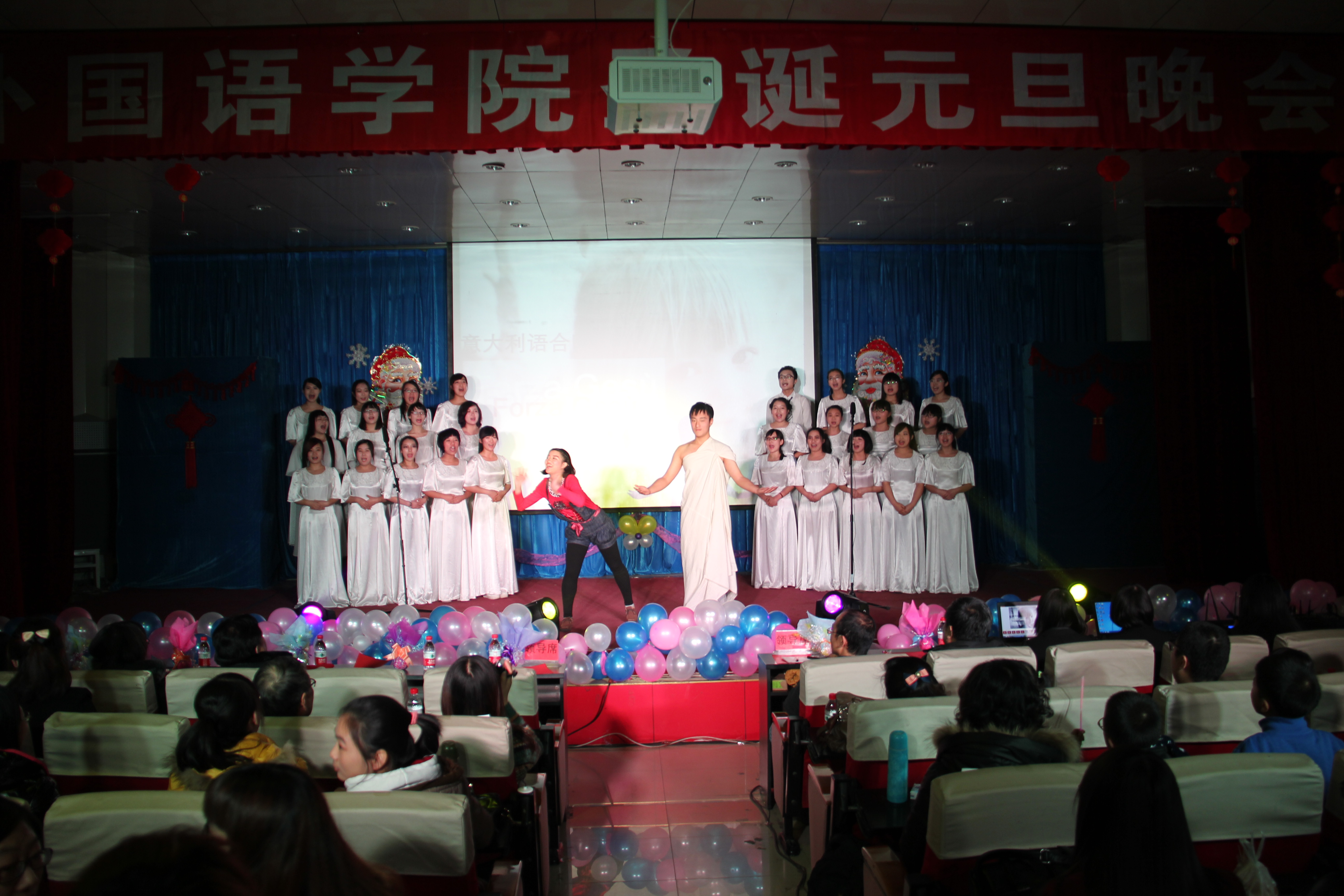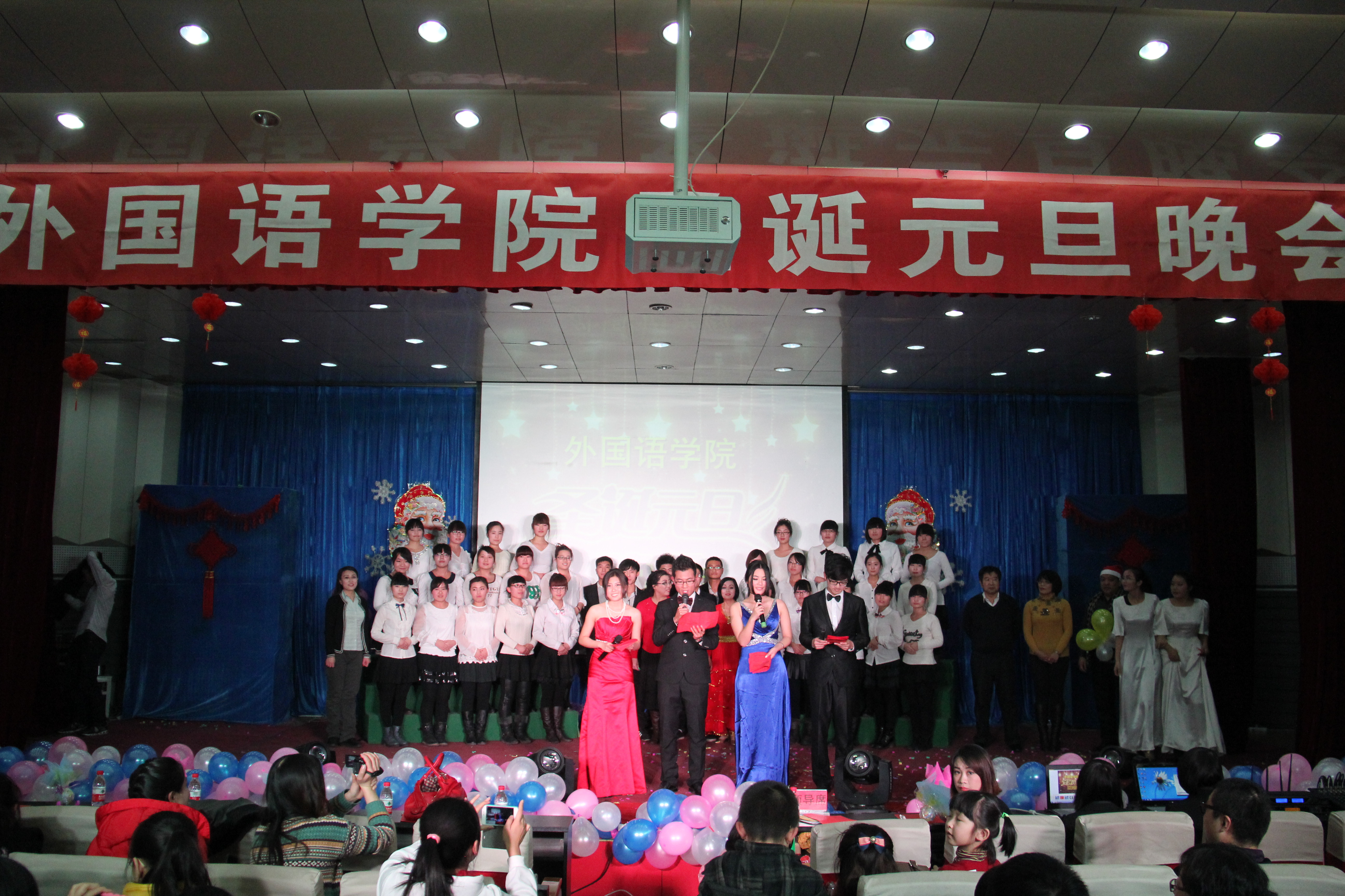 科师相聚庆圣诞,外院联欢迎新春。2013年12月27日晚7点,太阳成集团tyc122cc2013年圣诞元旦晚会在开发区校区综合楼报告厅隆重举行。外国语公司党委书记白雪松、经理邵丽君、副经理游建民、副经理崔海英、各教学部教师、学工办老师以及班级辅导员出席了本次晚会。
