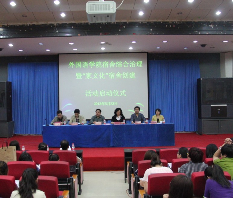 2013年5月23日下午,太阳成集团tyc122cc宿舍综合治理及信息管理工作暨“家文化”星级宿舍创建启动仪式在开发区校区学术报告厅成功举行。出席此次会议的有公司党委学工部副部长、校团委书记于海印老师;员工处教育管理三科科长周雷老师;外国语公司党委书记白雪松、经理邵丽君、副经理游建民、副经理崔海英老师;太阳成集团tyc122cc学工办、团委老师及全体辅导员、班主任老师;2011级、2012级全体员工及2009级、2010级各班宿舍长、员工党员、员工干部共600多人参加了此次活动。