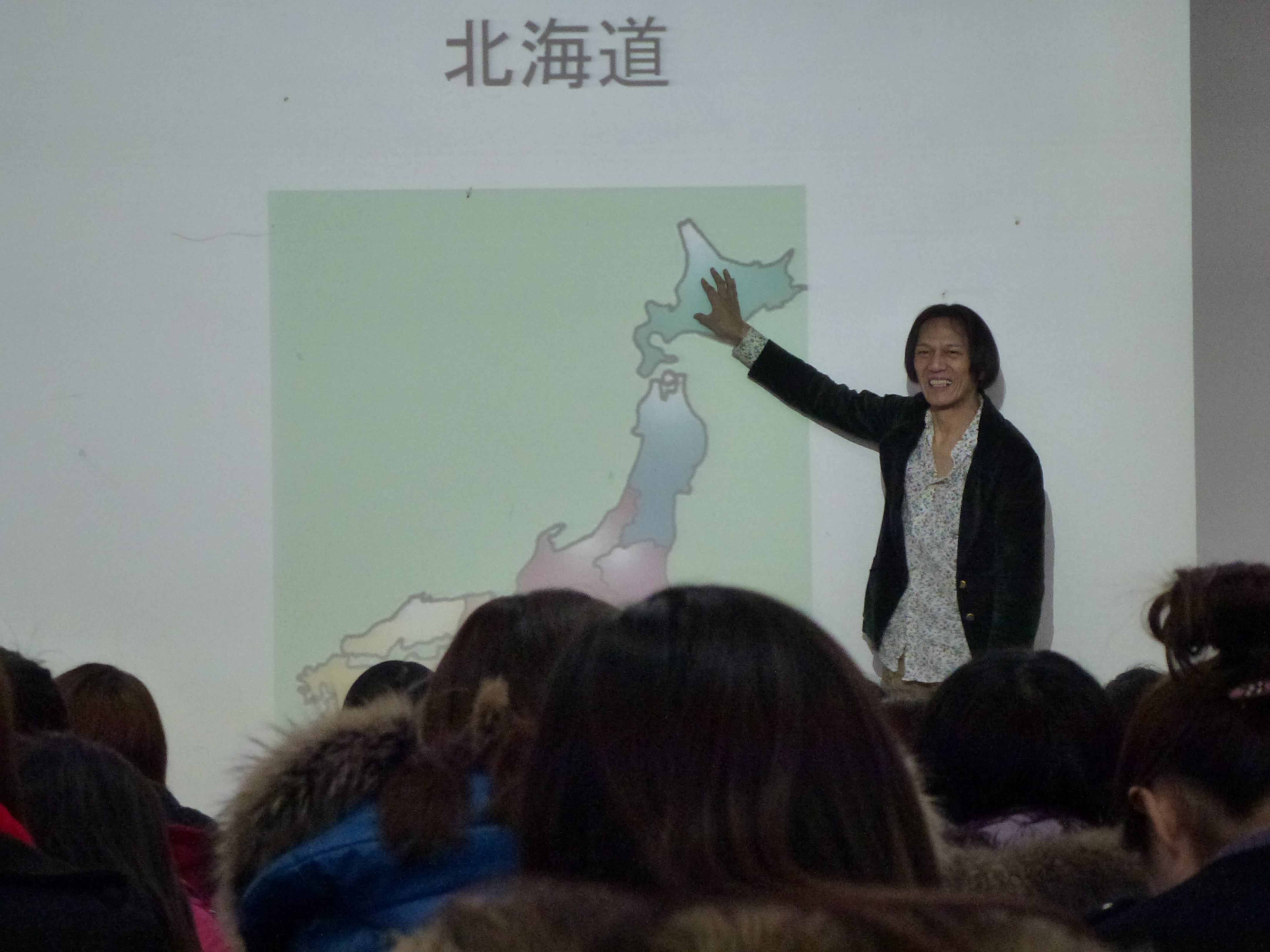 2012年11月24日,太阳成集团tyc122cc邀请日本学者小林寿绪先生来公司讲学。应用日语专业师生参加了讲座。该讲座主要介绍日本国内存在的地域性差异,具体围绕着关东(东京)、关西(大阪)、中部(名古屋)、北海道(札幌)、九州(福冈)等地区来讲述日本人的思维方式、行为方式、生活习惯等方面的不同。讲座内容贴近日本真实生活,因而能够加强日语专业员工对日本的了解,进一步促进日语语言及日本文化的学习。