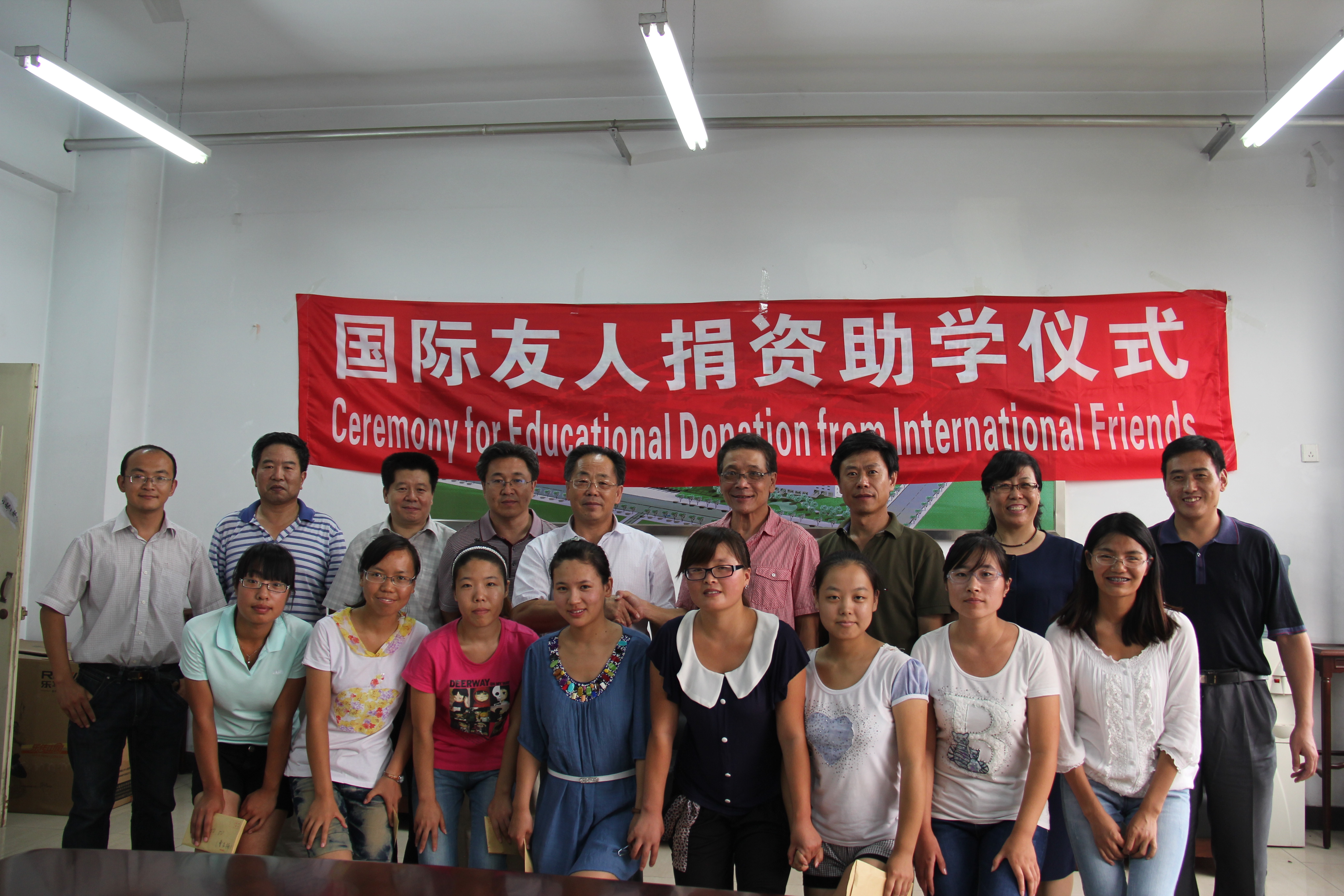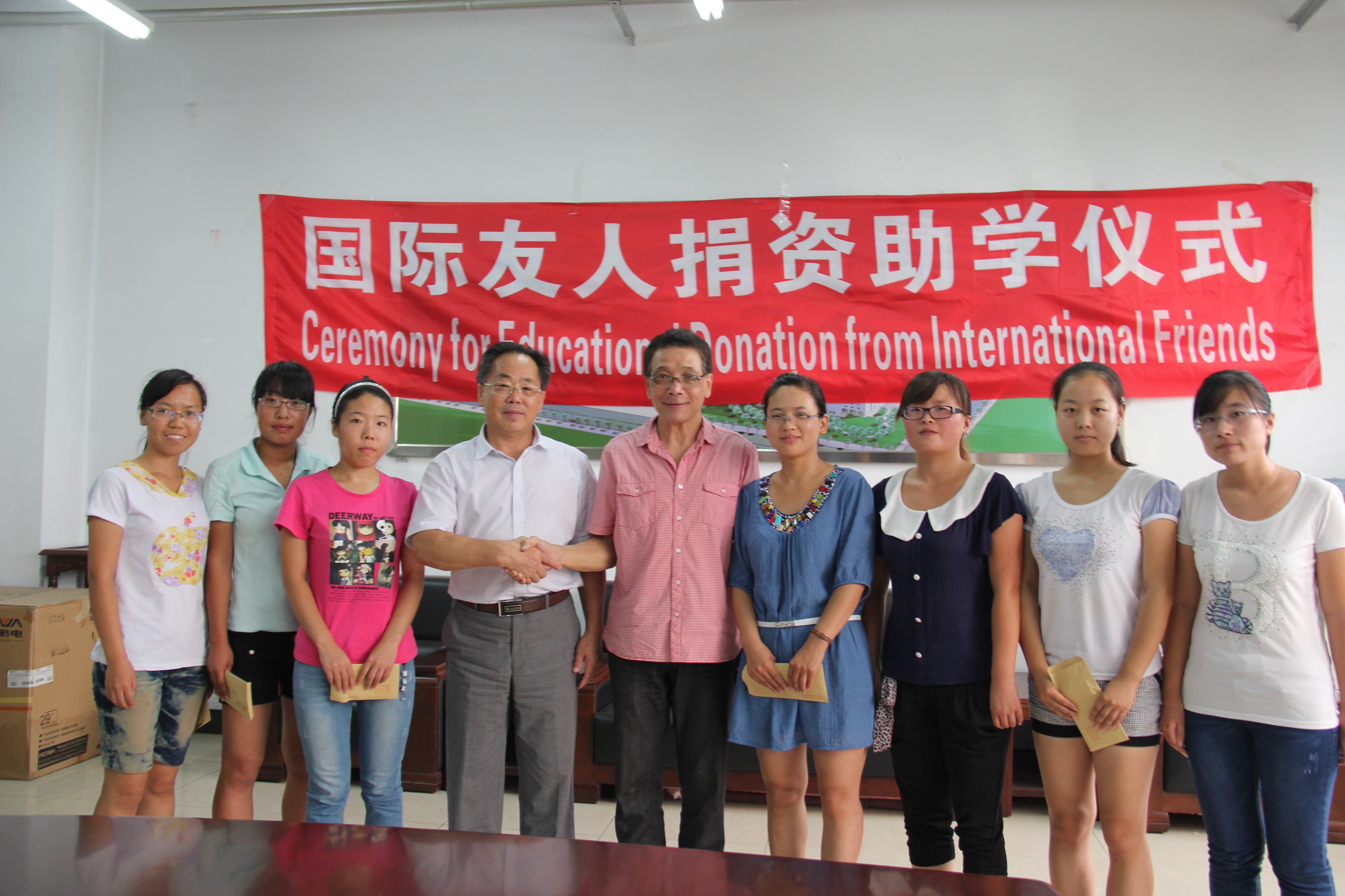 2012年8月30日下午,国际友人捐资助学仪式在开发区校区一楼会议室举行,公司孟令臣副董事长、党委宣传部田毅部长、国际交流处东方阳处长、员工处冯瑞银处长、太阳成集团tyc122cc经理邵丽君、副经理游建民参加此次活动,仪式由外国语公司党委书记刘朝晖主持。此次捐资助学活动由公司澳大利亚籍华人教师Michael先生发起。Michael先生到公司太阳成集团tyc122cc任教后,教学之余非常关心太阳成集团tyc122cc员工的生活和成长,看到有些员工因家庭贫困求学困难时,决定对这些同学提供帮助。在Michael先生的积极倡导下有包括Michael先生在内的澳籍华人、马来西亚华人、新加坡华人以及和澳大利亚朋友6位国际友人愿意为家庭贫困员工提供资助,帮助他们完成学业。此次共募集人民币41000 元,有8 名员工获得资助。仪式上,Michael先生简要介绍了自己的华人身世以及捐资助学的理由和捐资人的期望,每位受助员工用英语表达了自己的感激之情和努力学习的决心。最后,孟令臣副董事长对Michael等国际友人的善举表示了充分肯定,希望同学们追求成功,努力学习,以实际行动把国际友人的这份爱心发扬光大,并希望广大教师学习国际友人关注员工健康成长和无私奉献的精神。