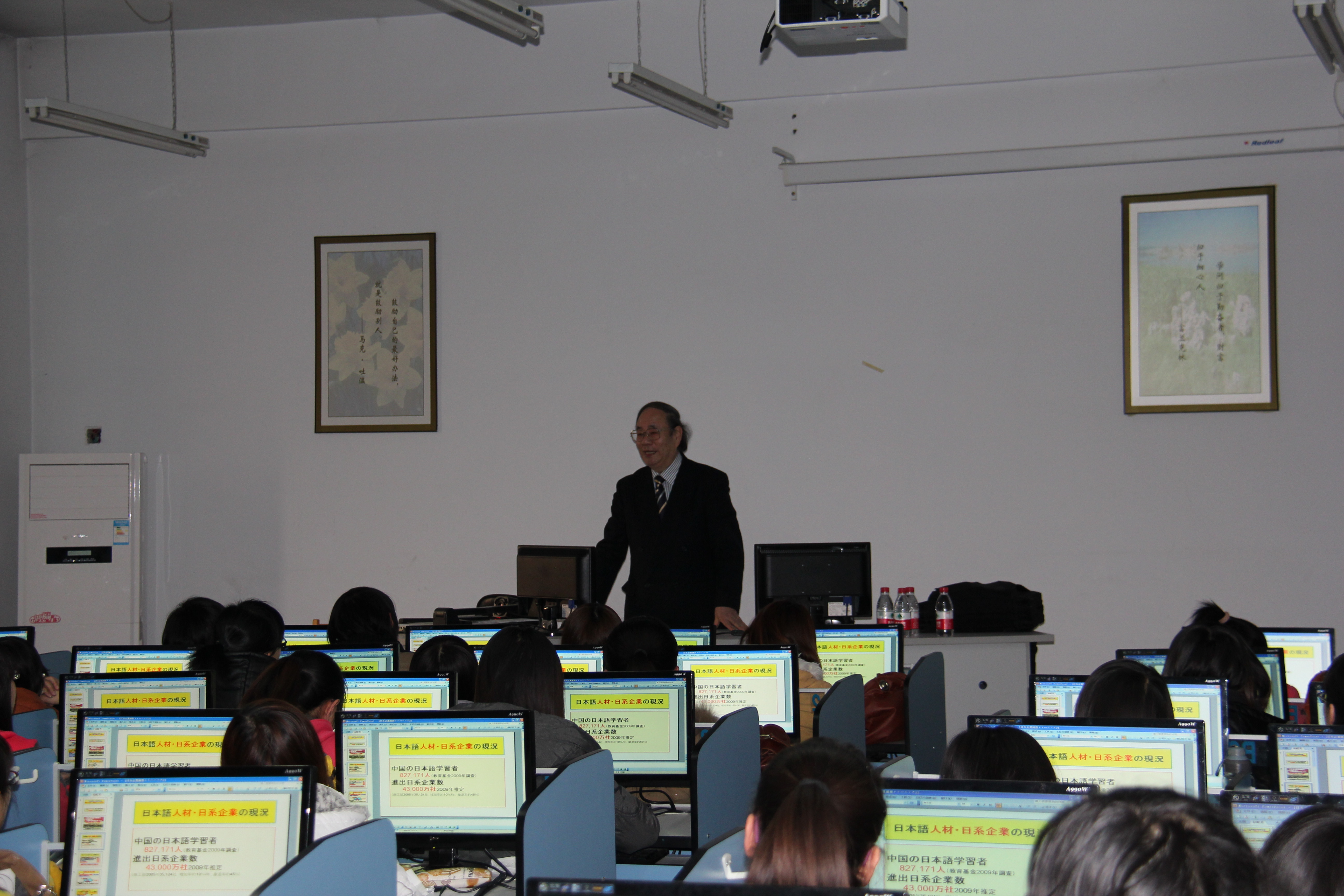 2012年3月12日,日中友好人才育成振兴机构理事长山口隆道先生在122cc太阳成集团官网开发区校区综合楼316教室为应用日语专业员工进行日语讲座。讲座主要内容是日语专业员工就业现状以及就业面试时应注意的各种事项。讲座中,山口先生通过设定面试场景,让员工进行就业面试模拟训练,使员工身临其境,进行实战练习,受益匪浅。该讲座将为日语专业员工就业问题的顺利开展起到极大促进作用。(日语教学部 王丽丽)