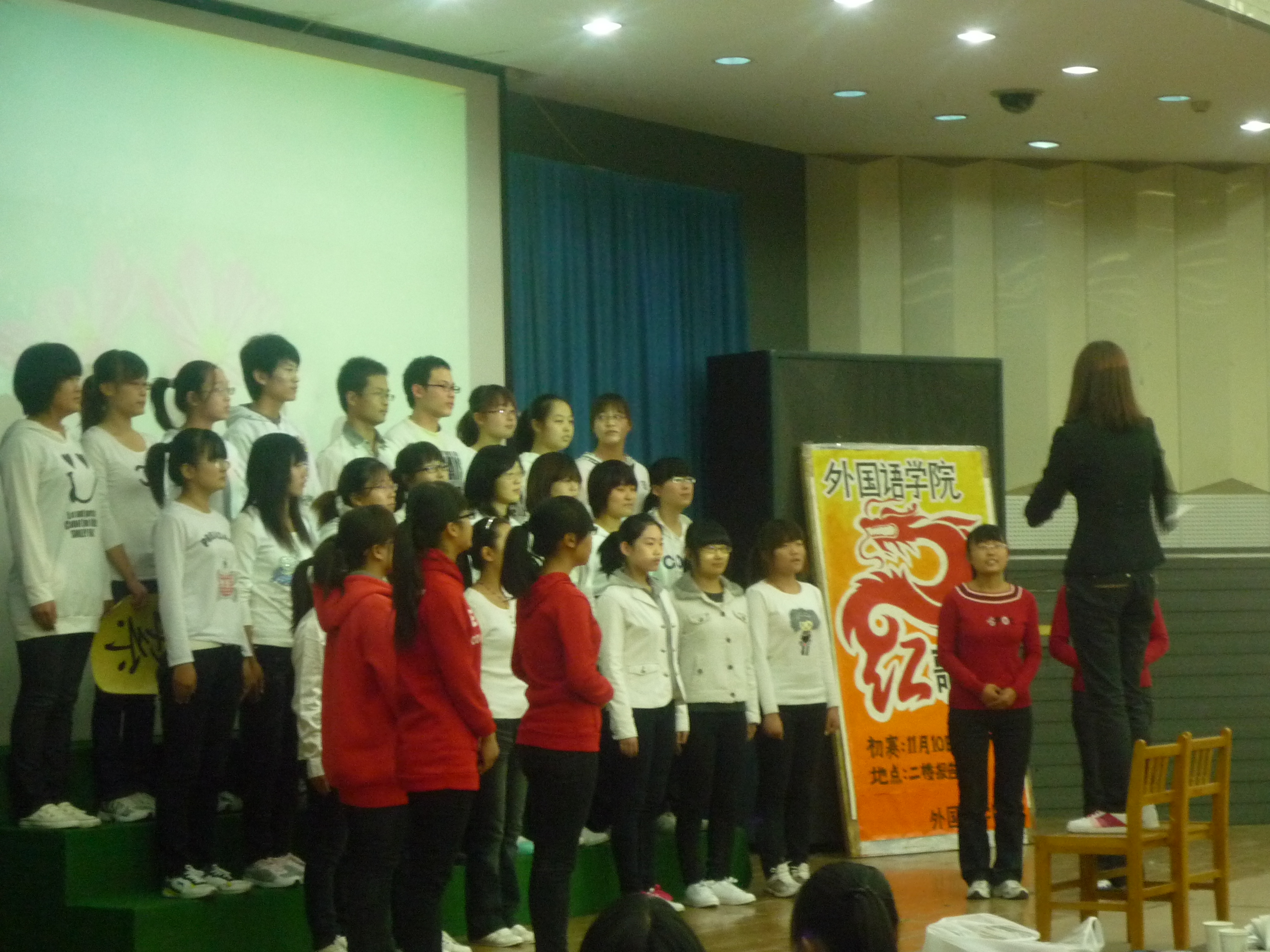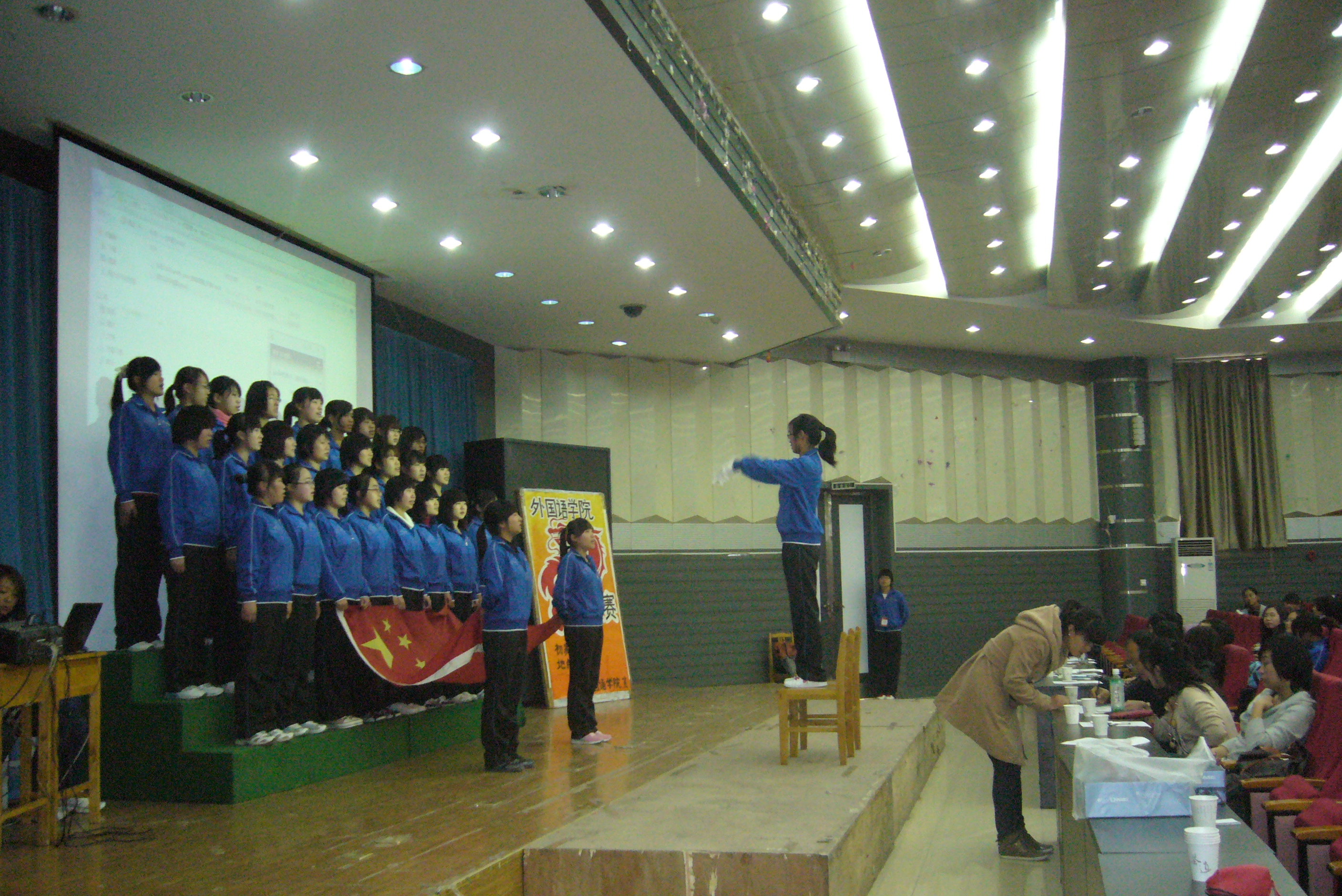 太阳成集团tyc122cc于2011年11月10日在综合楼二楼报告厅举办了“唱校歌,颂祖国”红色经典大合唱初赛。太阳成集团tyc122cc全体10级、11级共23个班级参赛。学工办老师和各班辅导员担任了此次比赛的评委。