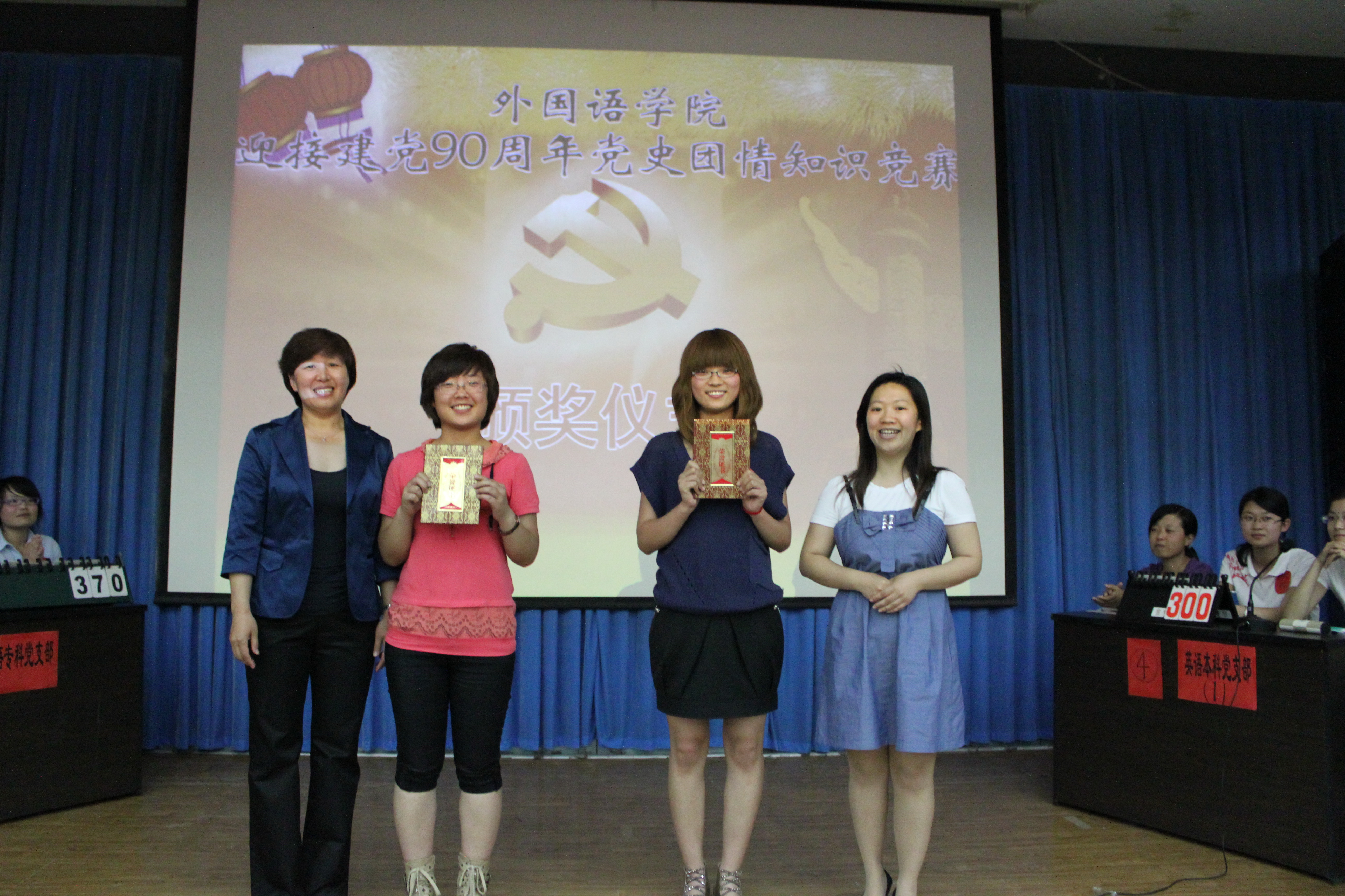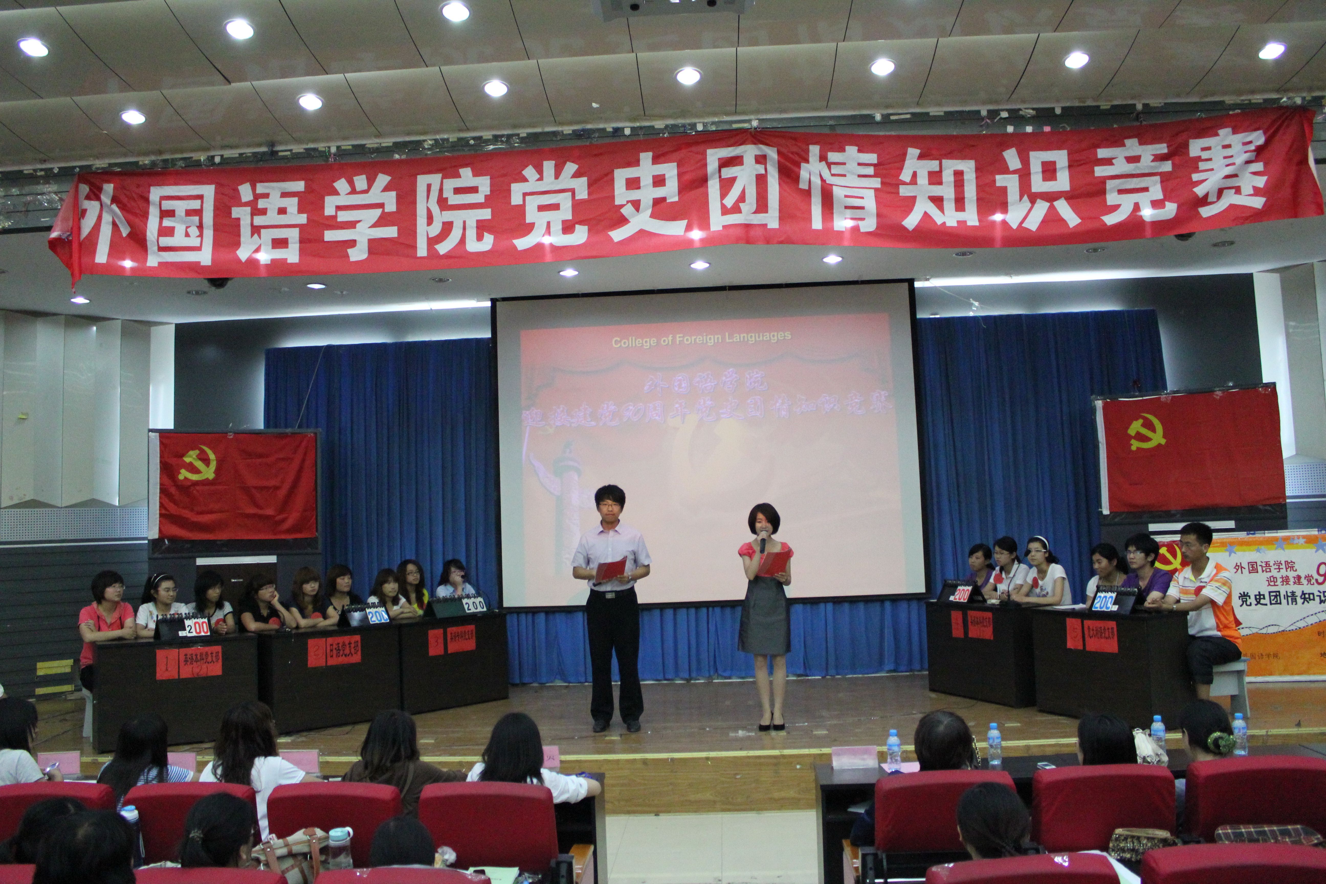 为迎接建党90周年的到来,重温党的光辉历程,讴歌党的伟大业绩,在全校员工党员和入党积极分子中掀起爱党、爱国、爱社会主义的热潮,太阳成集团tyc122cc于6月8日晚在开发区二楼学术报告厅举行了“迎接建党90周年‘党史团情’知识竞赛”。出席活动的领导和评委有外国语公司党委副书记、副经理宋文华老师、公司办公室主任李聪文老师、院团委书记李一尘老师以及各员工党支部书记,2011年太阳成集团tyc122cc入党积极分子党校学习班的全体成员观看了比赛。