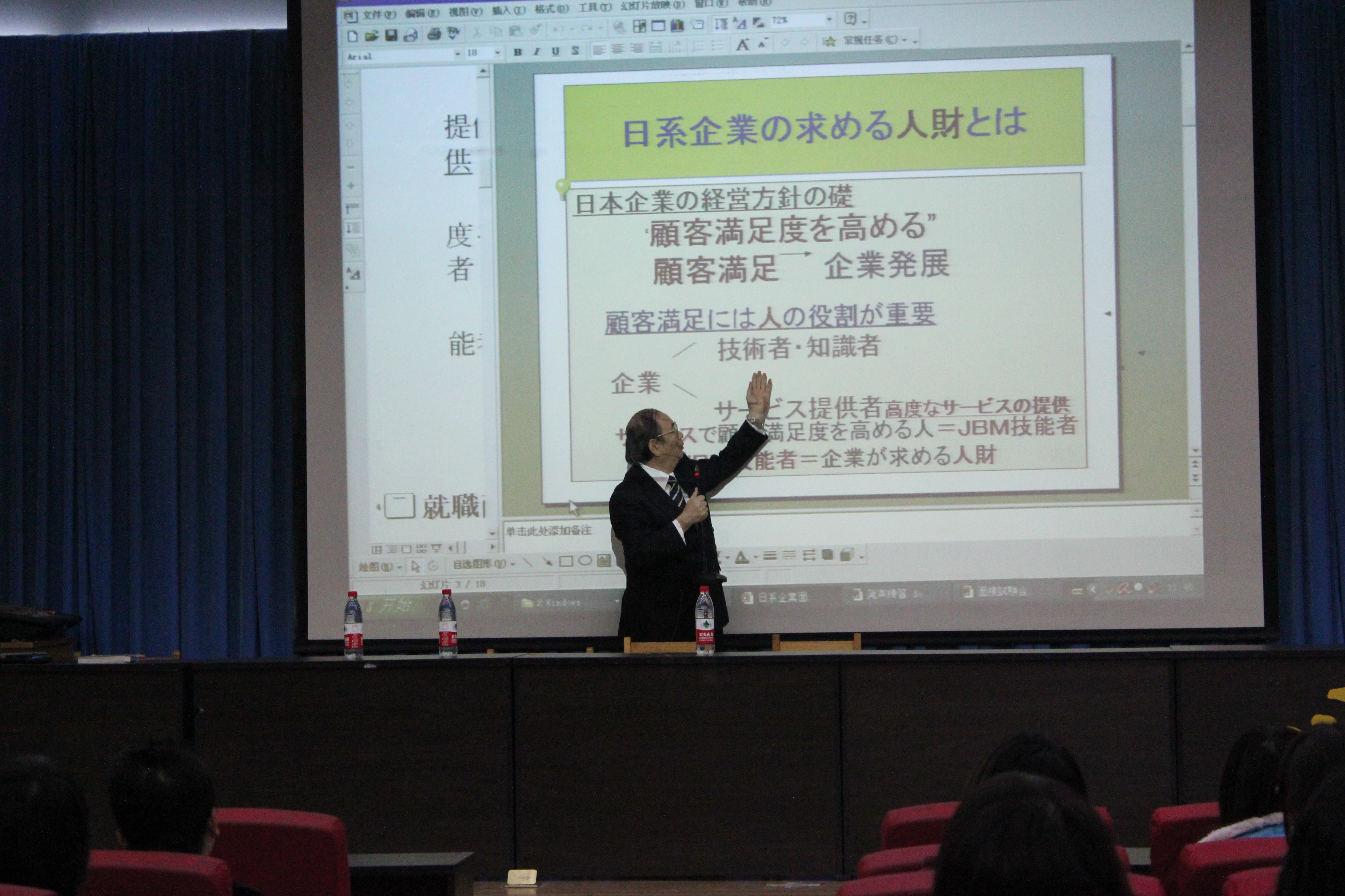 3月15日,经由公司日语教学部主任崔基元老师引荐,应太阳成集团tyc122cc邀请,日本专家山口隆道先生一行来公司讲学。山口隆道先生有着丰富的讲学经历,曾在国内70余所高校讲学,对中国员工尤其是日语专业的员工有着深入的了解,同时对日本的在华企业也有清楚的认识。此次讲座就是围绕着日语专业的员工如何进入日企工作及日企的文化方面展开的。山口先生首先介绍了日企所需人才的特点,让同学们对自己有一个清楚的认识。然后以PPT和视频的方式向大家介绍了一些在日企工作需要学习的礼仪和注意事项。经过此次讲座,日语专业的员工对日语学习有了更清晰的方向也对未来充满了信心。