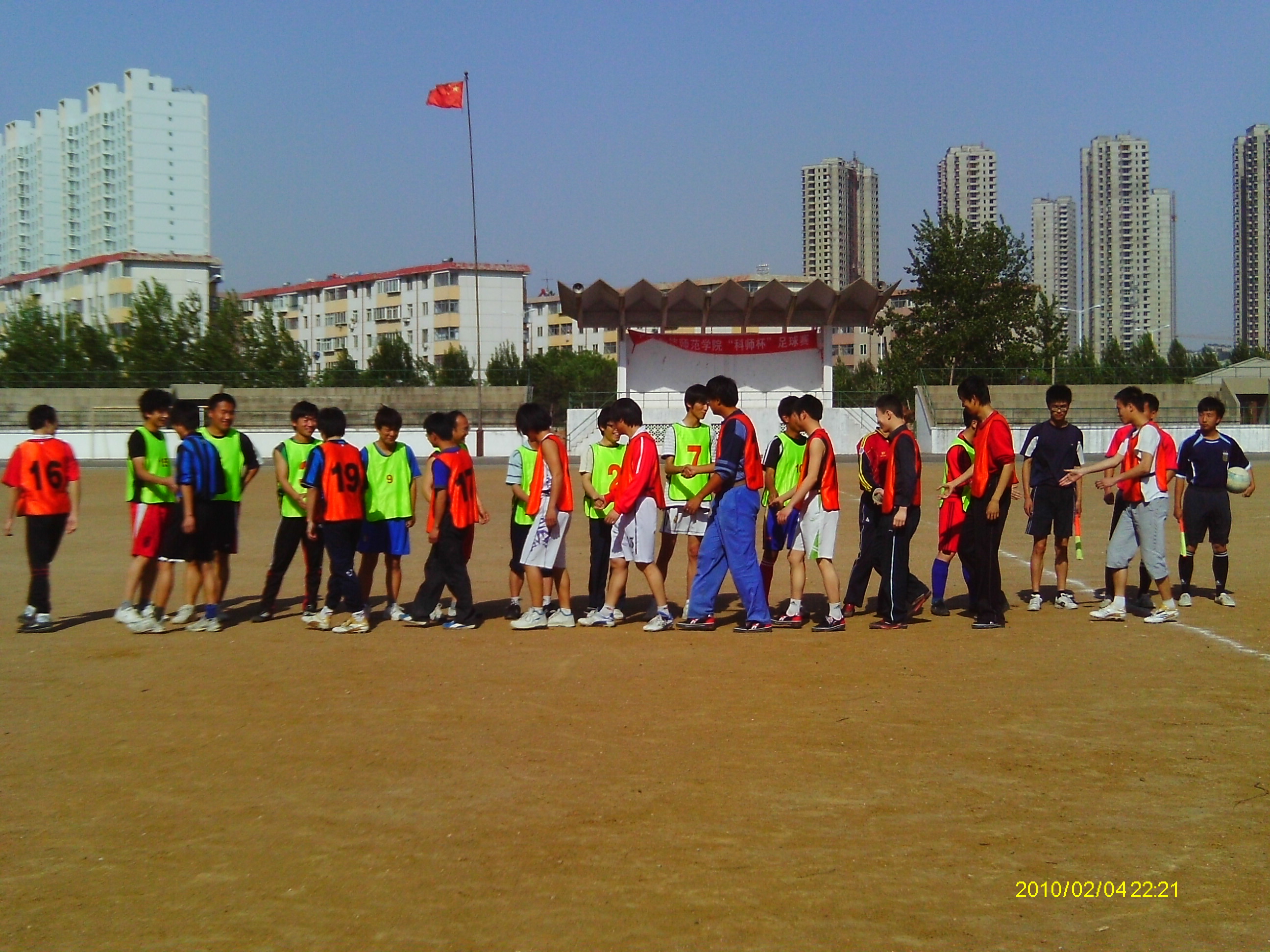 两队握手致意(绿色队服为公司球员)