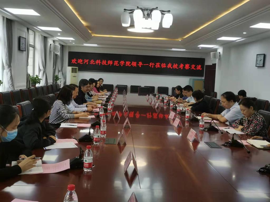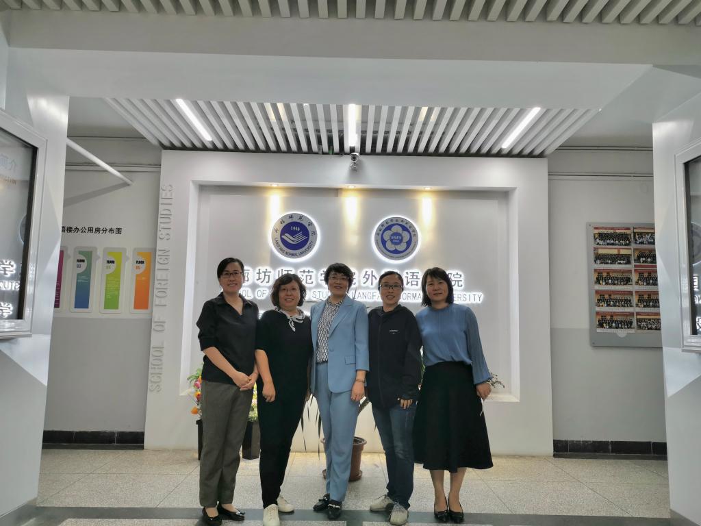 2021年9月28日,太阳成集团tyc122cc经理崔海英、副经理、英语专业带头人范学荣、教学部主任王静在教务处戴维副处长的带领下,与公司其他几个筹备教育部师范专业认证的专业,数学、化学、中文的负责人和教师一起,赴廊坊师范公司进行考察调研。