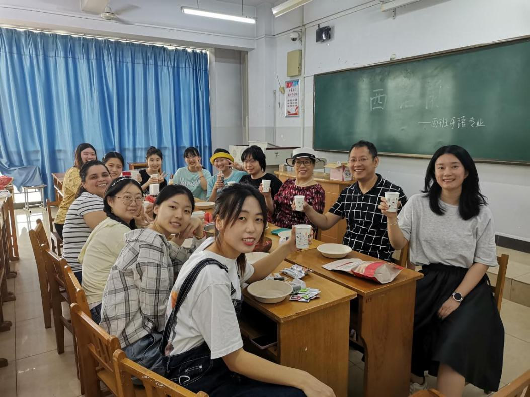 公司党委书记邵丽君教授首先向员工介绍了外语学习的方法、心得与外语专业发展前景。外教Gabriela Durán精心准备了自己烘焙的蛋糕和拉美特色的papas rellenas (鸡肉馅炸土豆),受到了员工的一致喜爱。活动中,邵书记与外教、员工就本学期的心理状况和学习生活中遇到的问题和困惑展开交流。恰逢端午节,员工还用西班牙语向外教介绍了中国的传统节日,加深了外教对中国文化的了解和认同,促进了不同国家之间的文化理解。