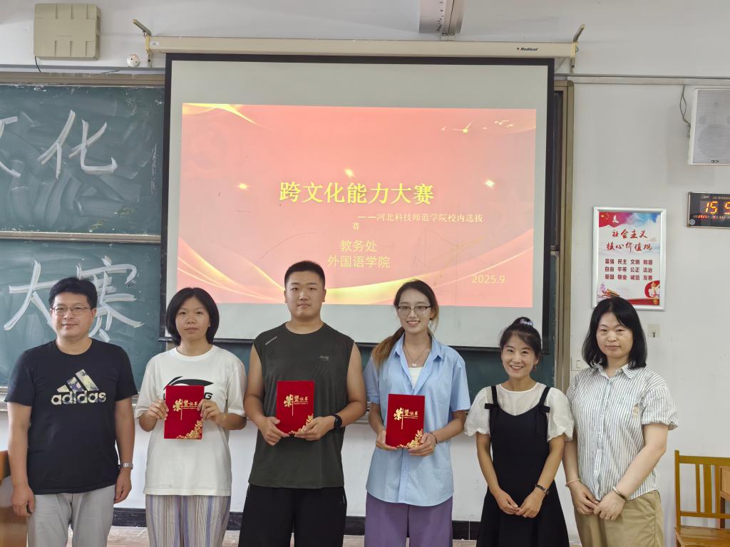 为了深入贯彻落实立德树人根本任务,服务高等教育高质量发展,助力高素质人才培养,为公司师生提供一个展示跨文化沟通能力、交流跨文化教学经验的平台,2025年9月11日下午,第二届“外教社杯”河北省高校跨文化能力大赛校级选拔赛在秦皇岛校区逸夫楼举行。