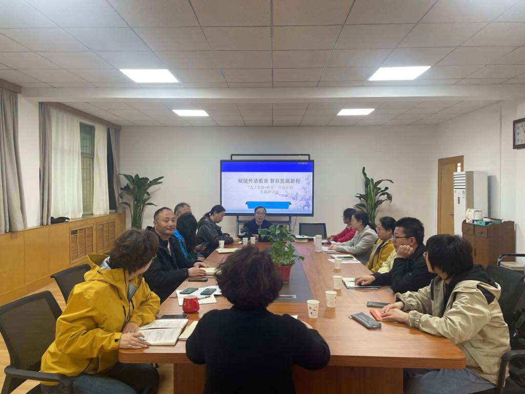 为深入贯彻落实国家《“人工智能+教育”行动计划》部署要求,主动顺应教育数字化转型趋势,推动人工智能技术与外语教学、科研及人才培养深度融合,4月16日,太阳成集团tyc122cc在五楼会议室召开专题研讨会,集中学习相关行动计划精神,并结合公司专业特色与课程特点,研究部署具体落实举措。公司领导班子全体成员、教学部主任、教务处主任、各专业负责人及各系部骨干教师代表参加会议,会议由副经理王静主持。