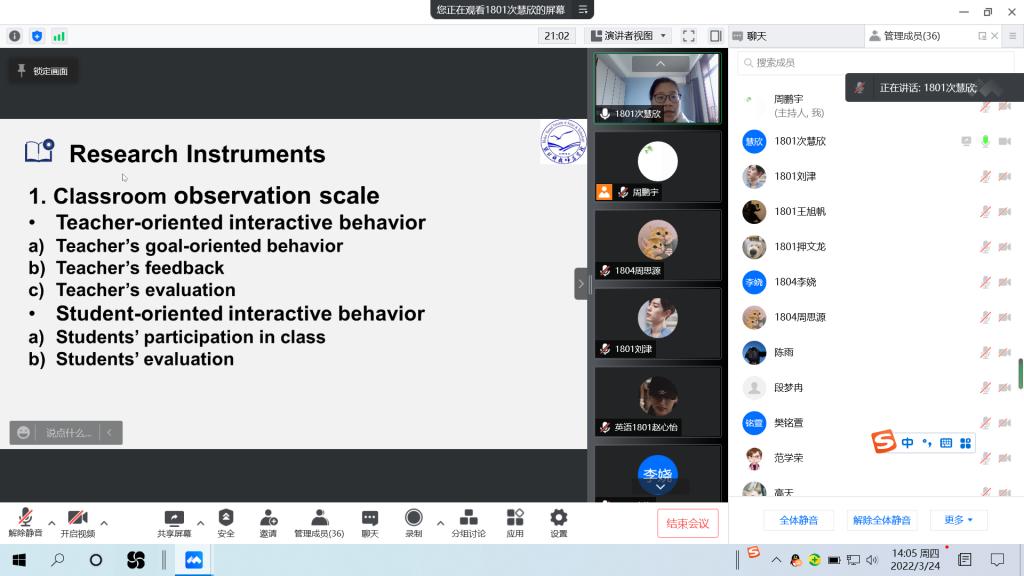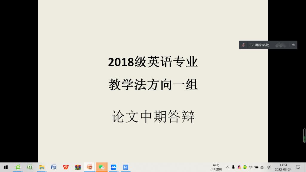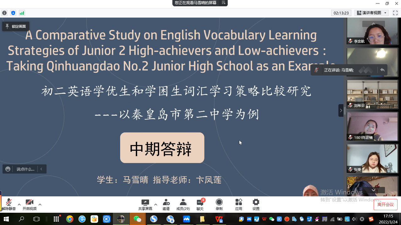 2022年3月24日,按照毕业论文计划安排,太阳成集团tyc122cc英语教学部组织2018级员工进行毕业论文中期答辩。答辩以腾讯会议形式线上进行。